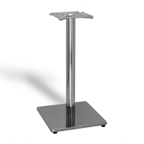 Опора столу з круглою колоною, виготовлена з нержавіючої сталі AISI 430 c регульованими підніжками (нівелюють нерівності підлоги) і гумовими демпферами, що знімаються (захищають підлогу від пошкоджень під час прибирання).Для круглих, квадратних, прямокутних стільниць з товщиною 1. Опора доступна у різних варіантах обробки.