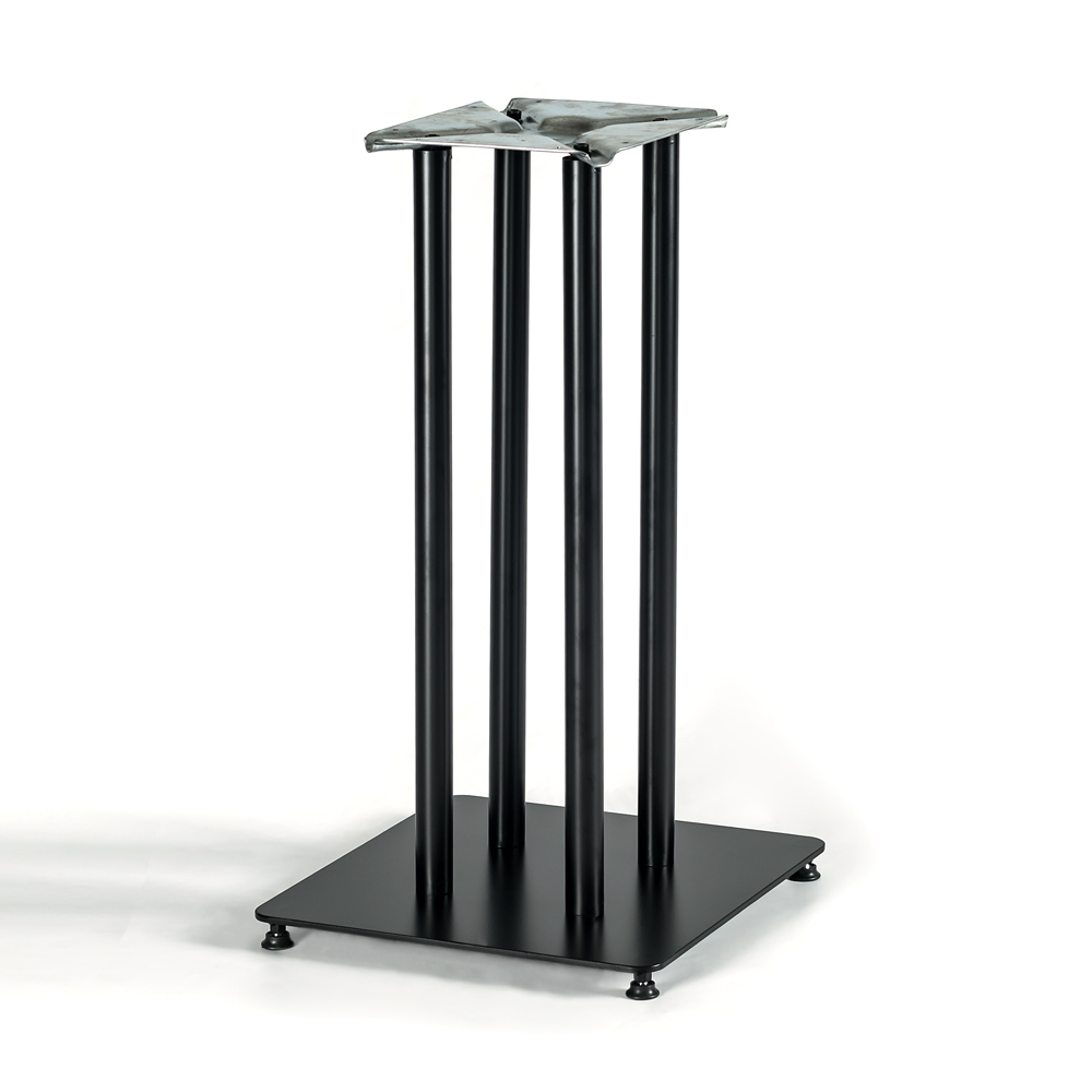 Опора столу з 4 круглими колонами, виготовлена з нержавіючої сталі AISI 430 c регульованими підніжками (нівелюють нерівності підлоги) і знімними гумовими демпферами (захищають підлогу від пошкоджень під час збирання). Для круглих, квадратних, прямокутних стільниць з товщиною. Опора доступна у різних варіантах обробки.