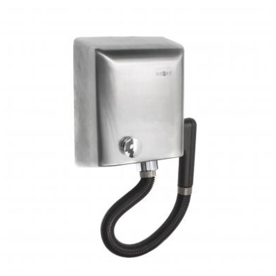 Сушарка ( фен ) для волосся M ANGO з двигуном потужністю 800 W і шлангом для зручного сушіння волосся, висушує волосся в найкоротші терміни і не витрачаючи великої кількості електроенергії. Корпус сушарки виготовлений з нержавіючої сталі AISI 304 товщиною 1,2 мм. Це гарантує тривалий термін та надійну експлуатацію обладнання. У апарата є кнопка увімкнення, цикл роботи можна налаштувати в діапазоні від 25 до 90 секунд. Також можна відрегулювати температуру повітря. MANGO немає потужного нагрівального елемента, т.к. завдяки трубці повітря не буде розсіюватися на всі боки, а завжди спрямоване на волосся і використовується зі 100% ефективністю