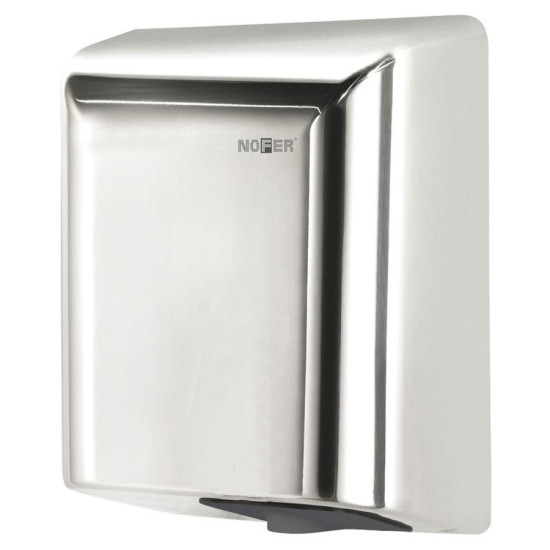 Високошвидкісна сушарка для рук FUGA має двигун, що працює на високих обертах, максимальне значення яких сягає 35000 об/хв. Час сушіння рук складає 6-12 сік. Швидкісна сушарка ідеально підійде для місць з великою прохідністю. У даній моделі відсутній нагрівальний елемент і досить потужний двигун. Автоматична сушарка оснащена інфрачервоним сенсором, він спрацьовує на відстані від 10 до 50 см. Також має міцний антивандальний корпус з нержавіючої сталі, без гострих кутів. Nofer FUGA має систему захисту IP X1, це означає, що прилад надійно захищений від попадання крапель води