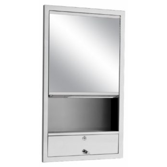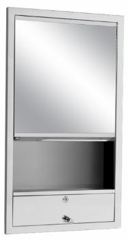 Вбудований в стіну компактний гарнітур, у виріб входить тримач паперових рушників (700 аркушів) і дозатор рідкого мила (3 літри), підходить для наповнення рідким милом різної консистенції, не вимагає спеціальних картриджів, корпус-нержавіюча сталь AISI 304.