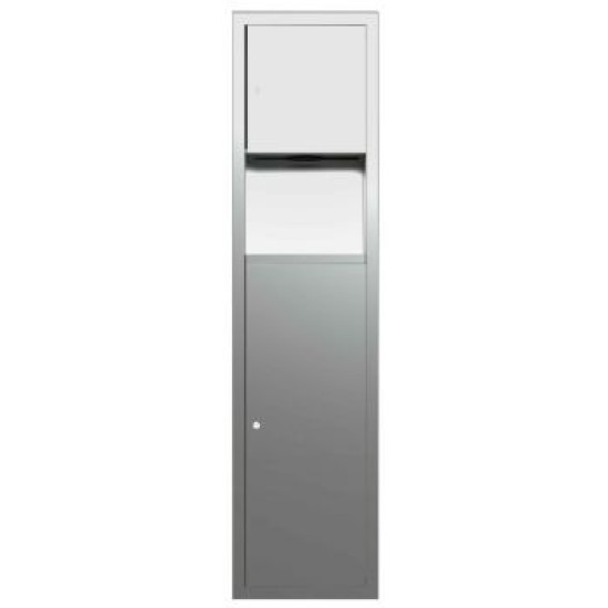Вбудований в стіну гарнітур, в виріб входить: тримач паперових рушників (700 аркушів) кошик для сміття/використаних паперових рушників -22,5 літрів, корпус-нержавіюча сталь AISI 304.