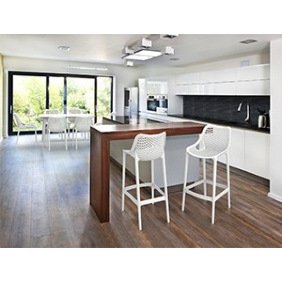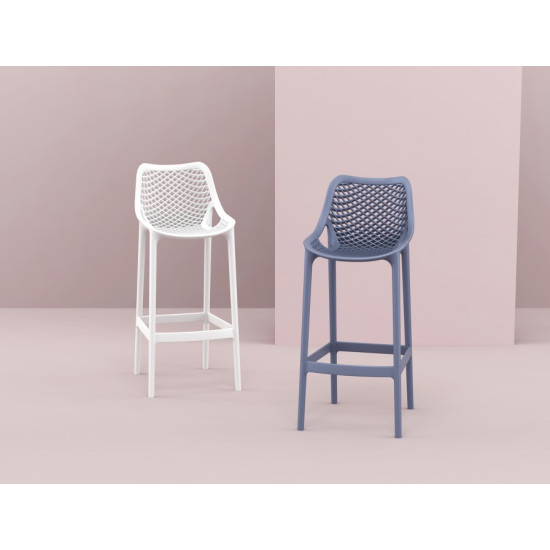 Барний стілець, що штабелюється (висотою 75 см) AIR виконаний з поліпропілену, армованого скловолокном, отриманим з використанням новітнього покоління технологій формування пластмас під тиском. Єдина форма без стиків та з'єднань