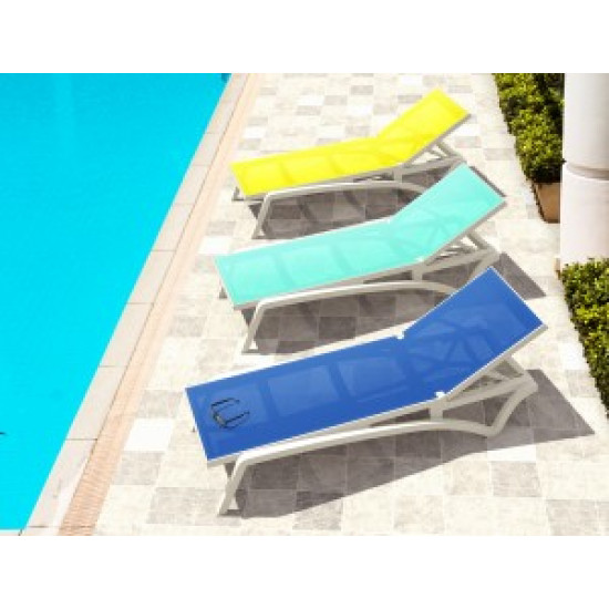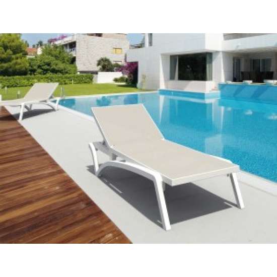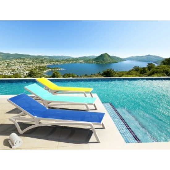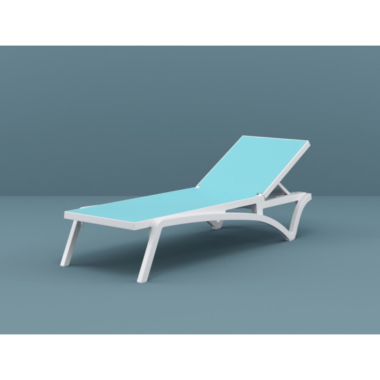 Шезлог PACIFIC , каркас виготовлений з міцної атмосферостійкої смоли, армованої скловолокном. Неметалічна рама. Матеріал не піддається дії іржі, гниття, розпаду волокон. Чохол із дихаючої синтетичної тканини (змінний) із захистом від впливу ультрафіолету (колір не вигоряє). Штабелований, спинка відкидається назад ( 5 положень), нековзні ніжки, коліщатка