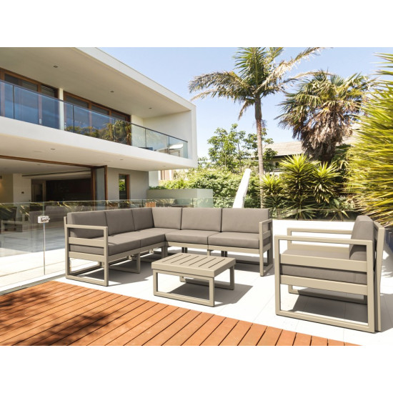 ПОДУШКА ДЛЯ КУТОВОГО НАБОРУ MYKONOS, виконана з водостійкої Etisilk поліестерової тканини із захистом від впливу ультрафіолету (колір не вигоряє), товщиною 10 см.