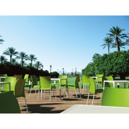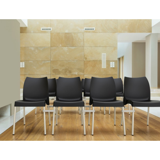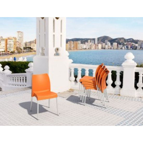 Штабельований стілець VITA . Корпус з полікарбонату, що переробляється, ніжки з анодованого алюмінію, діаметром 25 мм.