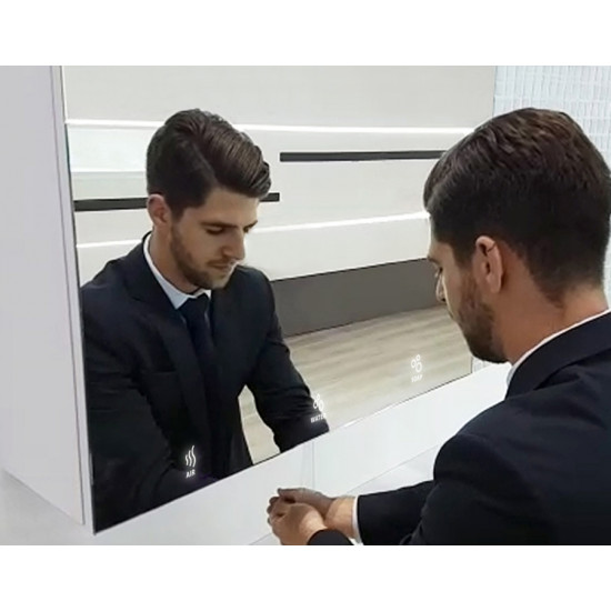 Модульна безконтактна (сенсорна) система інтегрована за дзеркало (не включено). Мінімалістичний дизайн. Легкість установки на каркасі з нержавіючої сталі. Кожен компонент може поставлятися індивідуально залежно від вибраної опції модуля