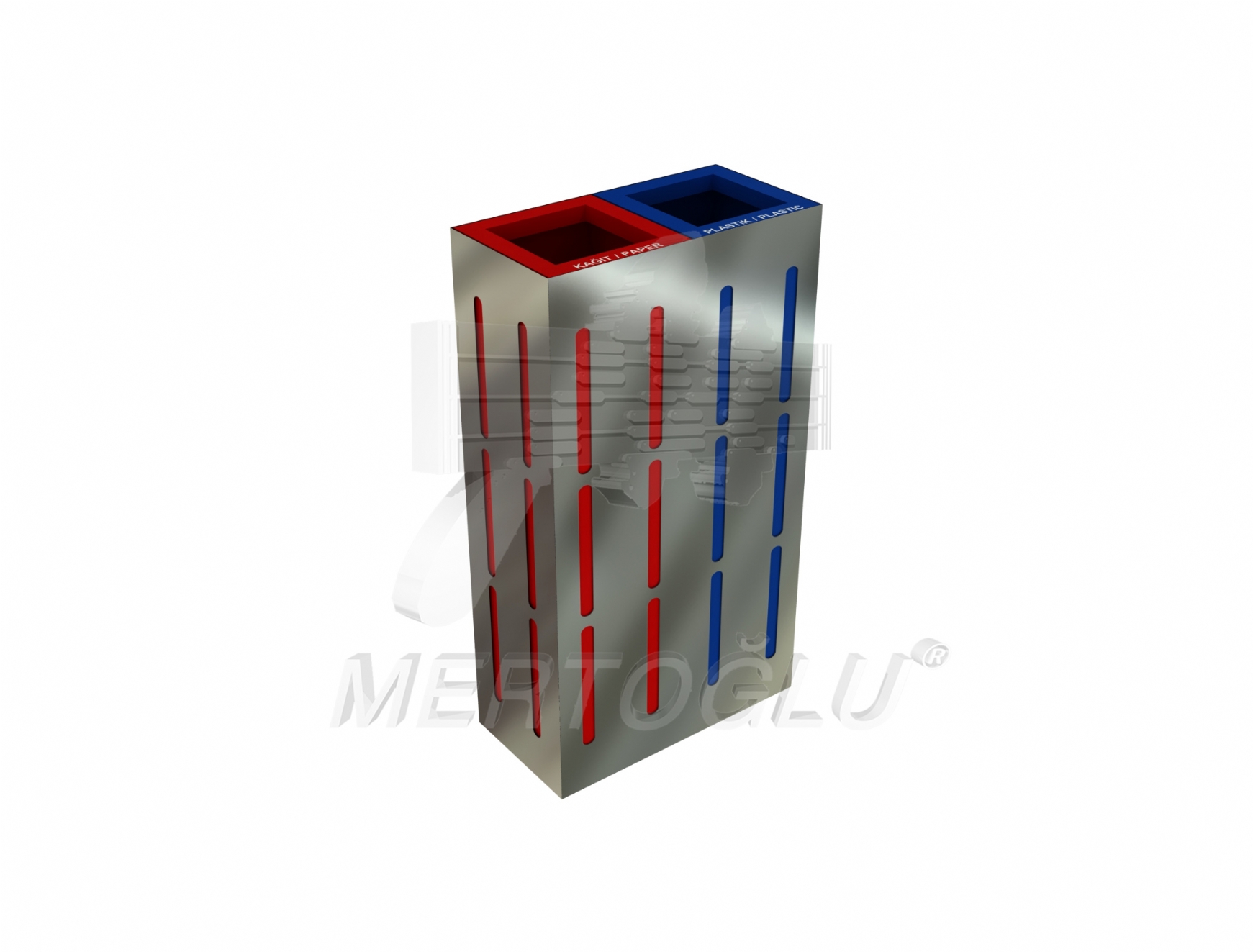 Урна для різного типу сміття, з нержавіючої сталі AISI 304 і листового металу, 2 відсіки, обсяг одного відсіку - 27 , 5 літрів, встановлюється на підлогу, для застосування всередині та зовні приміщення