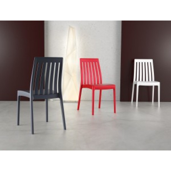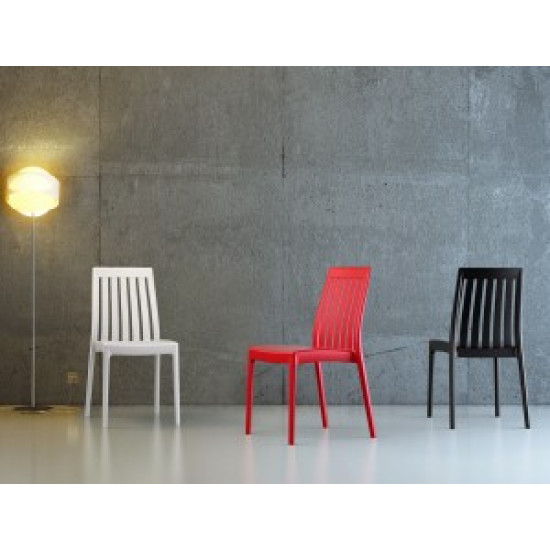 Штабельований стілець SOHO виконаний з поліпропілену, армованого скловолокном, отриманим з використанням новітнього покоління технологій формування пластмас під тиском. Єдина форма без стиків та з'єднань