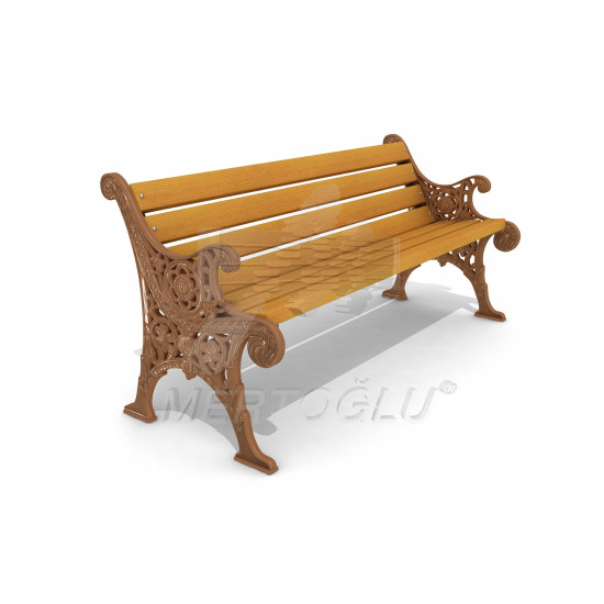 Лавка , каркас та ніжки-алюмінієве лиття, сидіння та спинка-дерево-сосна з просоченням та лаковим покриттям, для застосування всередині та зовні приміщення
