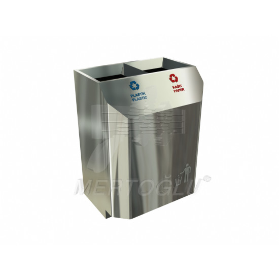 Урна для різного типу сміття, з нержавіючої сталі AISI 304,2 відсіку, обсяг одного відсіку - 49 літрів, встановлюється на підлогу, для застосування всередині та зовні приміщення