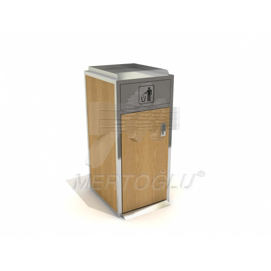 Урна для сміття з поворотною кришкою в зону фудкорту, серії "Ексклюзив" з нержавіючої сталі AISI 304 і покритої меламіном ДСП, під пластиковий контейнер із загальним об'ємом 120 літрів, встановлюється на підлогу, для застосування всередині приміщення