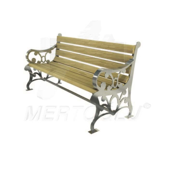 Лавка , каркас-нержавіюча сталь AISI 304, дерево-сосна з просоченням та лаковим покриттям, для застосування всередині та зовні приміщення