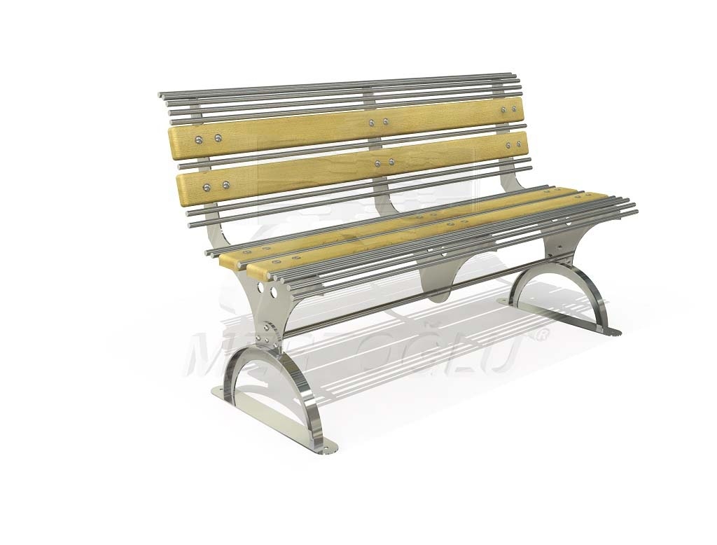 Лавка , каркас - нержавіюча сталь AISI 304, дерево-сосна з просоченням та лаковим покриттям, для застосування всередині та зовні приміщення
