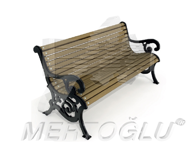 Лавка, каркас та ніжки-алюмінієве лиття, сидіння та спинка-дерево-сосна з просоченням та лаковим покриттям, для застосування всередині та зовні приміщення