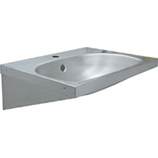 Раковина підвісна з переливом та отвором під змішувач. Виконана з нержавіючої сталі AISI 304, товщиною 1,2 мм.