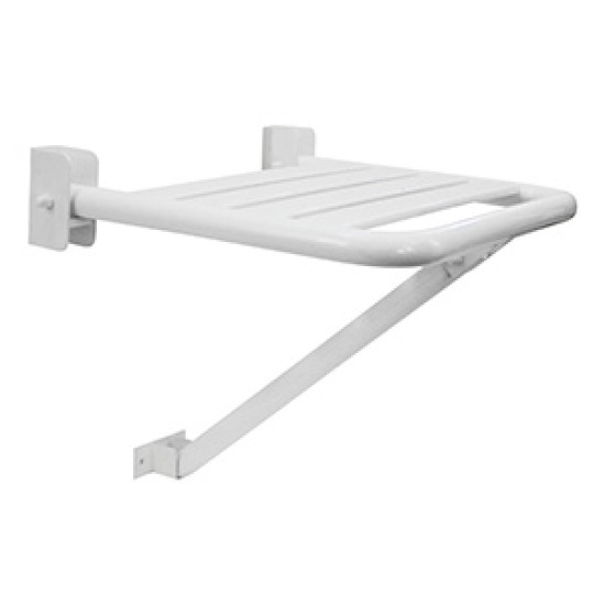 Сидіння відкидне в душову кабіну c настінним кріпленням, 450 х 410 мм , діаметр: Ø 32 мм, максимальне навантаження до 110 кг, виконаний з нержавіючої сталі AISI 304, товщиною 1,5 мм.