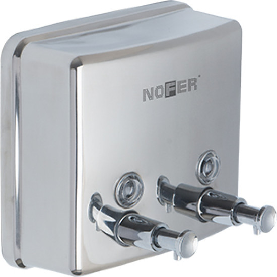 Дозатор рідкого мила з двома ємностями (із настінною установкою) з нержавіючої сталі AISI 304. Підходить для наповнення рідким милом різної консистенції, не вимагає спеціальних картриджів. Корпус дозатора захищений пластиковим внутрішнім баком, є віконце за контролем рівня мила, закривається на ключ