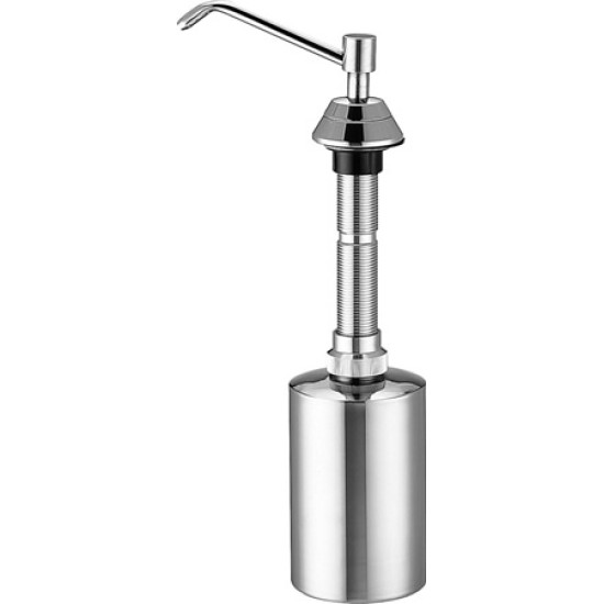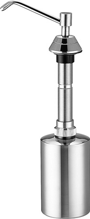 Дозатор рідкого мила, що вбудовується в раковину або стільницю, об'єм 500 мл, усі конструкція та всі компоненти виконані з нержавіючої сталі AISI 304, призначений для місць з великою прохідністю. Бак для мила зручно знімається для регулярного заповнення. Захисний ключ для заправки зверху. Підходить для наповнення рідким милом різної консистенції