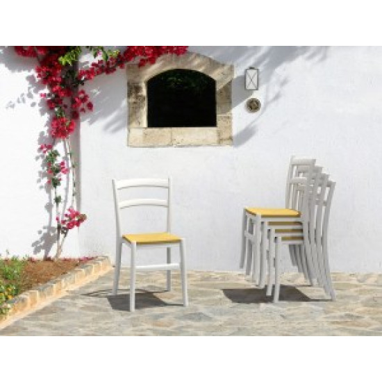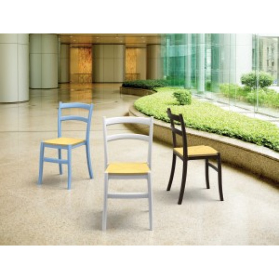Стілець TIFFANY S виконаний з поліпропілену, армованого скловолокном, отриманим з використанням новітнього покоління технологій формування пластмас під тиском. Єдина форма без стиків та з'єднань
