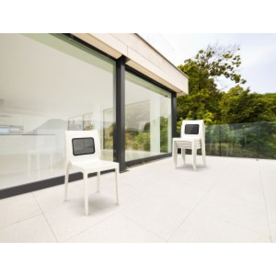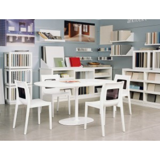 Стілець LUCCA Т виконаний з поліпропілену, армованого скловолокном, отриманим з використанням новітнього покоління технологій формування пластмас під тиском. Спинка із прозорого полікарбонату